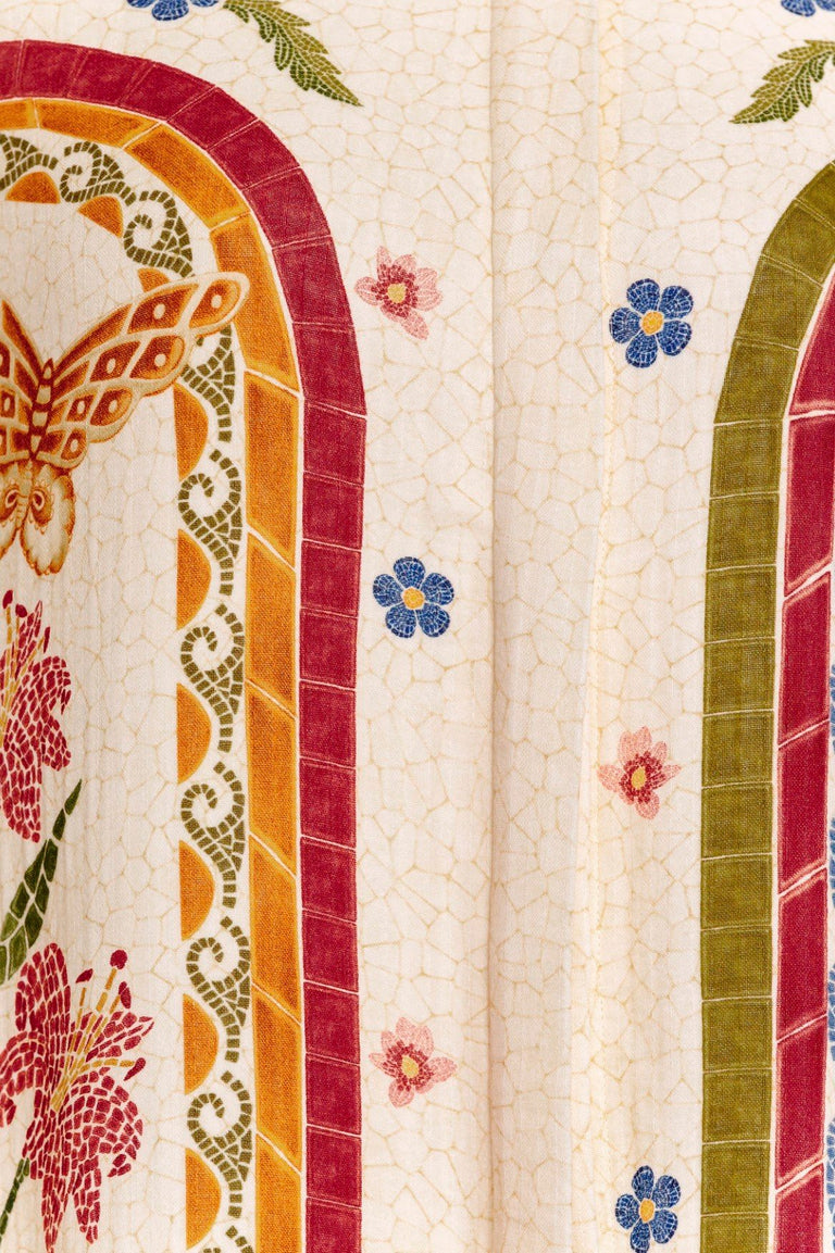 The Clavelina Tunic is a lightweight maxi cover-up with a button-up front and a statement placement print. Designed in an airy fabric, it layers effortlessly over swimwear for comfort and coverage by the beach or pool. Its boho-inspired silhouette makes it a versatile piece, perfect for creating laid-back, stylish looks.