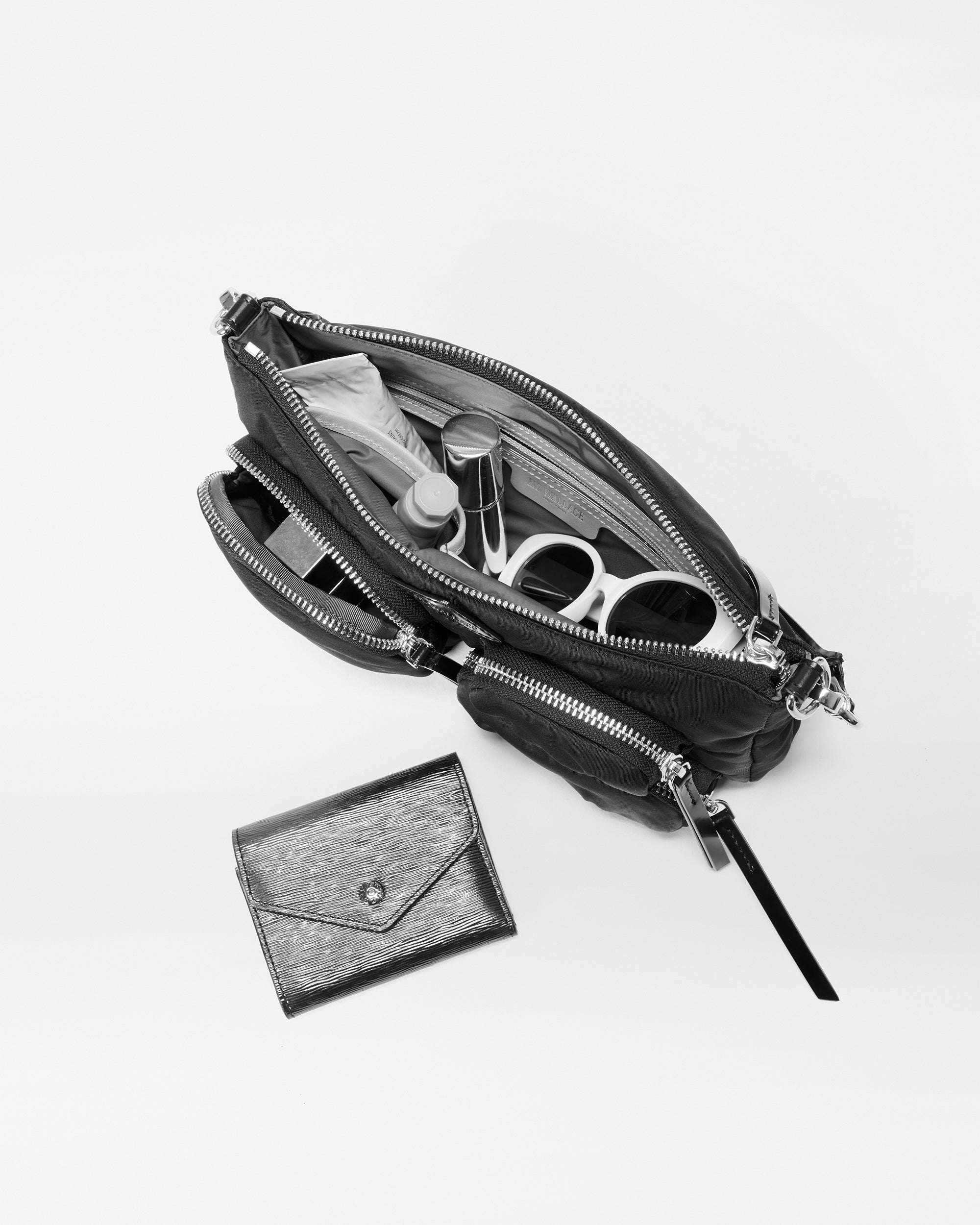 • Detachable, adjustable nylon crossbody strap