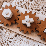 This Gear puzzle provides opportunity for children to problem-solve, critical thinking, and perseverance. Our Gear Puzzle is an excellent way to introduce STEM concepts with your children.