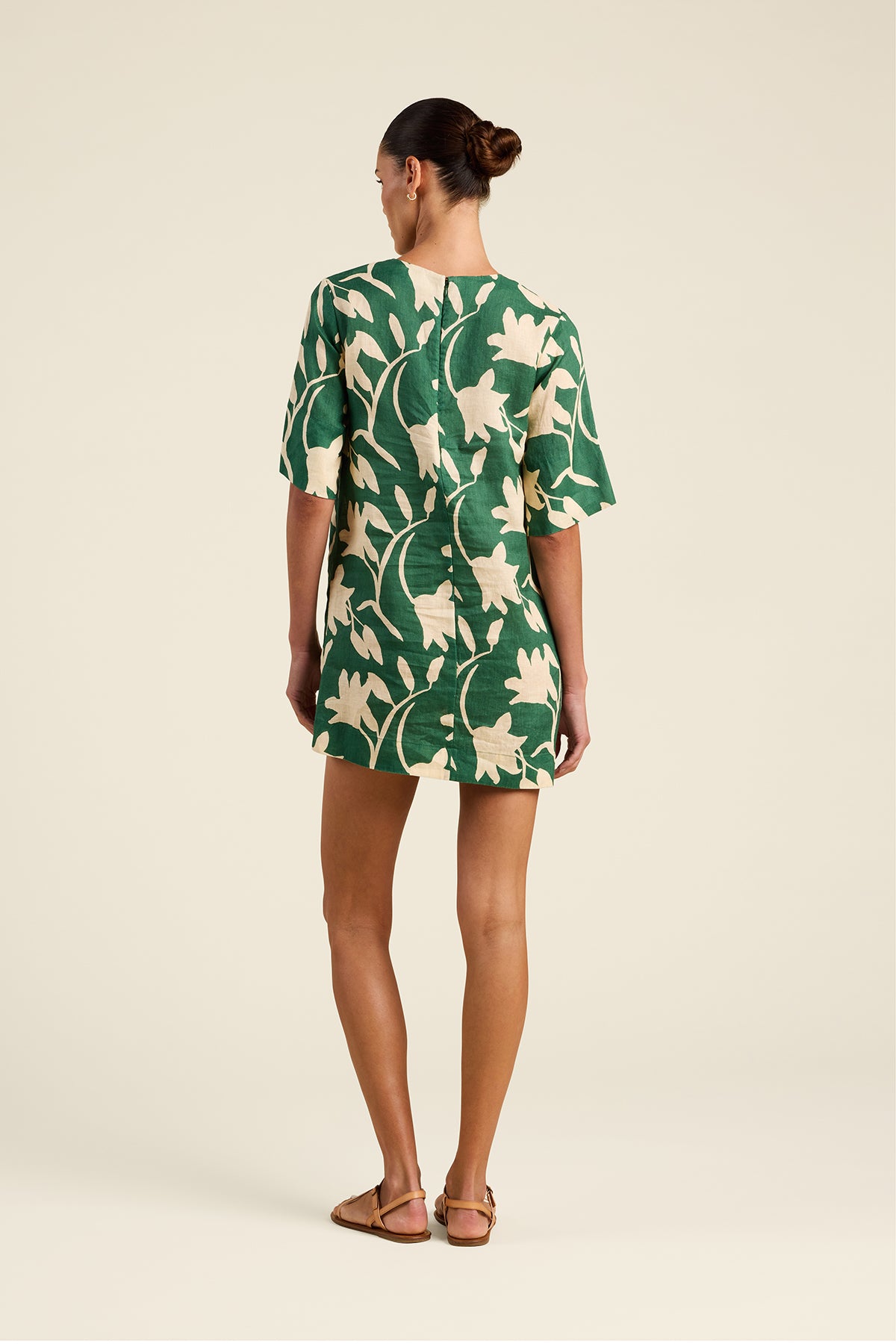 The Manu Dress is a mini-length shift dress with cleanly finished short sleeves, neckline and hidden back zipper closure. Shown here in Madalena Floral and made from our linen.