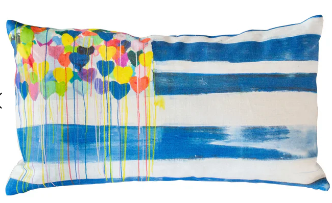 The Kerri Rosenthal Pillow Collection all comes from Kerri’s artwork. Everything we do starts with art. They are made with the finest Belgian linen and cotton linen and filled with the perfect blend of down and poly.