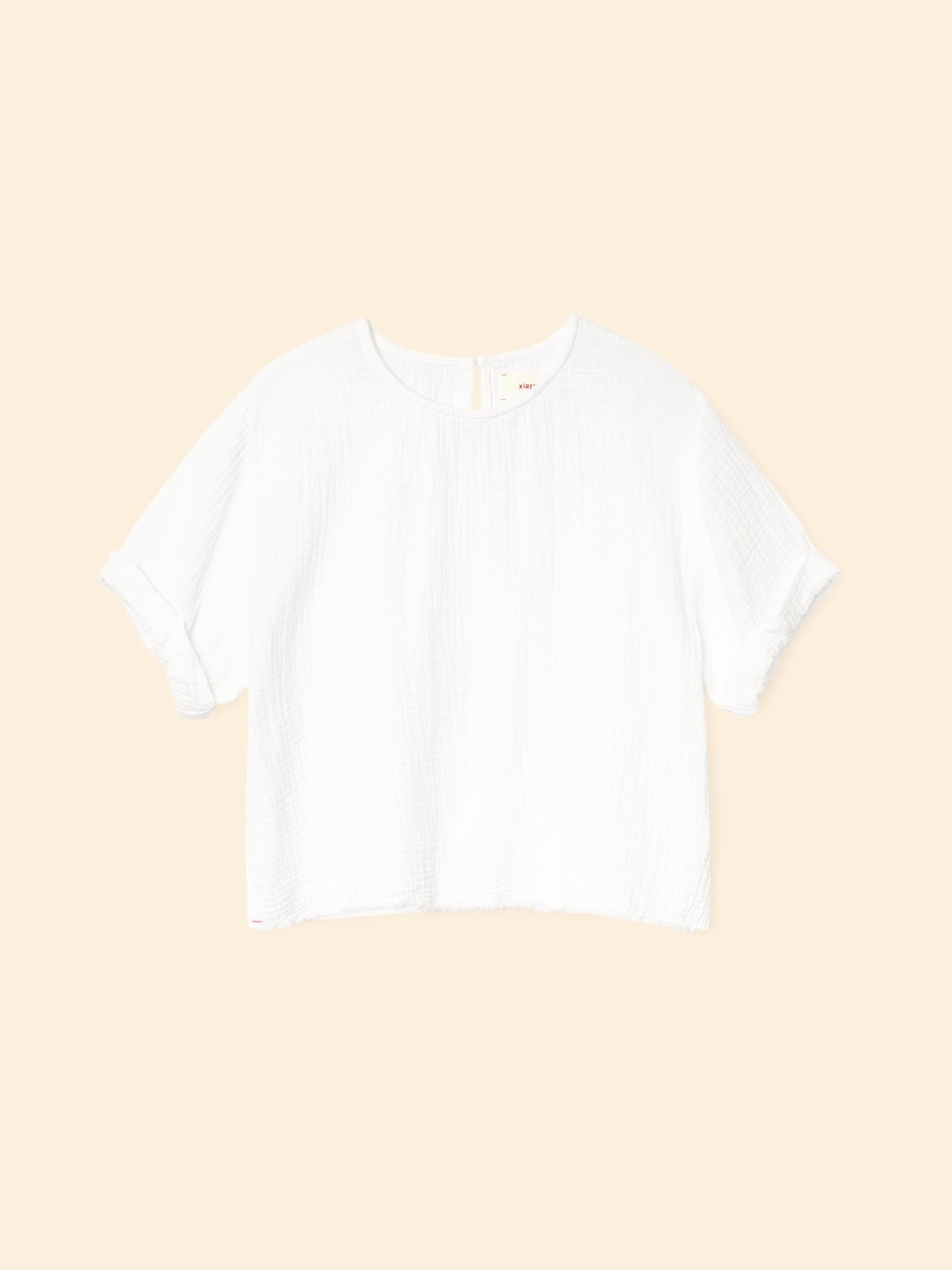 Bare Necessities. Carson is made in our washed double faced cotton gauze for a soft, gently crinkled feel. This popover top features a scoop neck, stitched rolled sleeves, and a keyhole button-back.