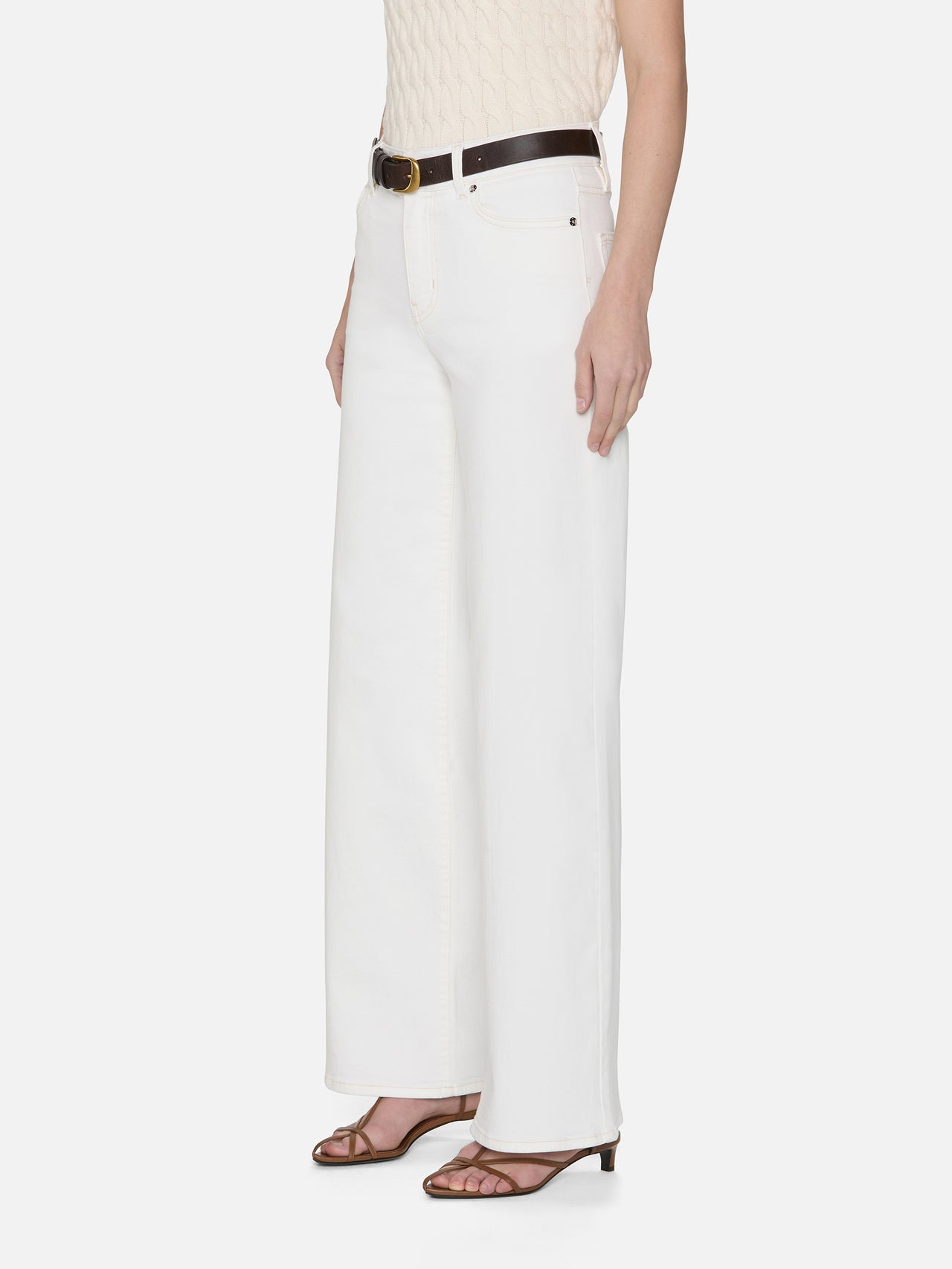 A FRAME introduction to the best-selling palazzo silhouette, this pair is designed with a flattering high rise, fitted hip, and subtle wide-leg flare that hits at the floor. Crafted from a sustainable, ultra-stretch cotton blend for soft and comfortable wear.