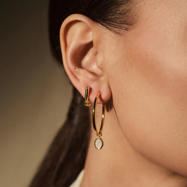 18k gold plated 925 sterling silver, 13.4mm length, 12.5mm width. Hypoallergenic.