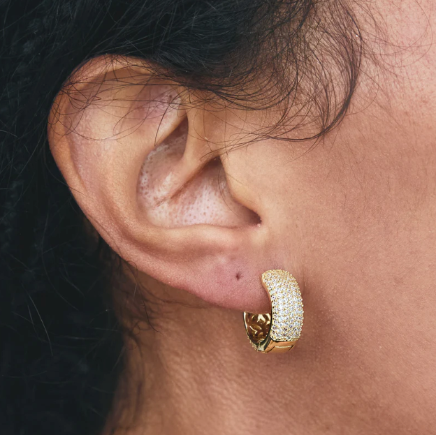 18k gold plated, 925 sterling silver, 3A CZ. 12.7mm length x 6.35mm wide