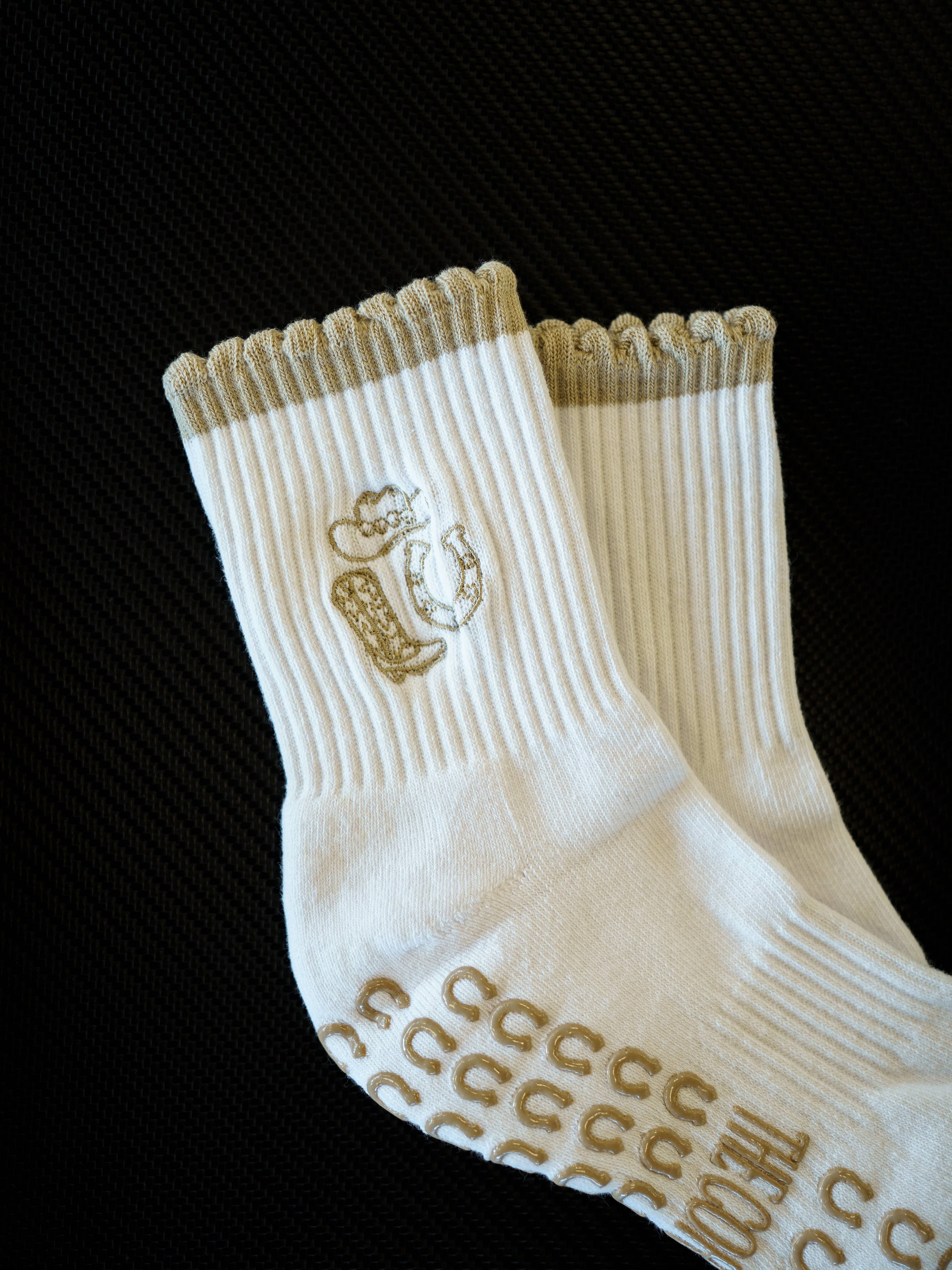 TCC Tan Cowgirl Hat, Boots, and Horseshoe | Pilates & Barre Grippy Socks