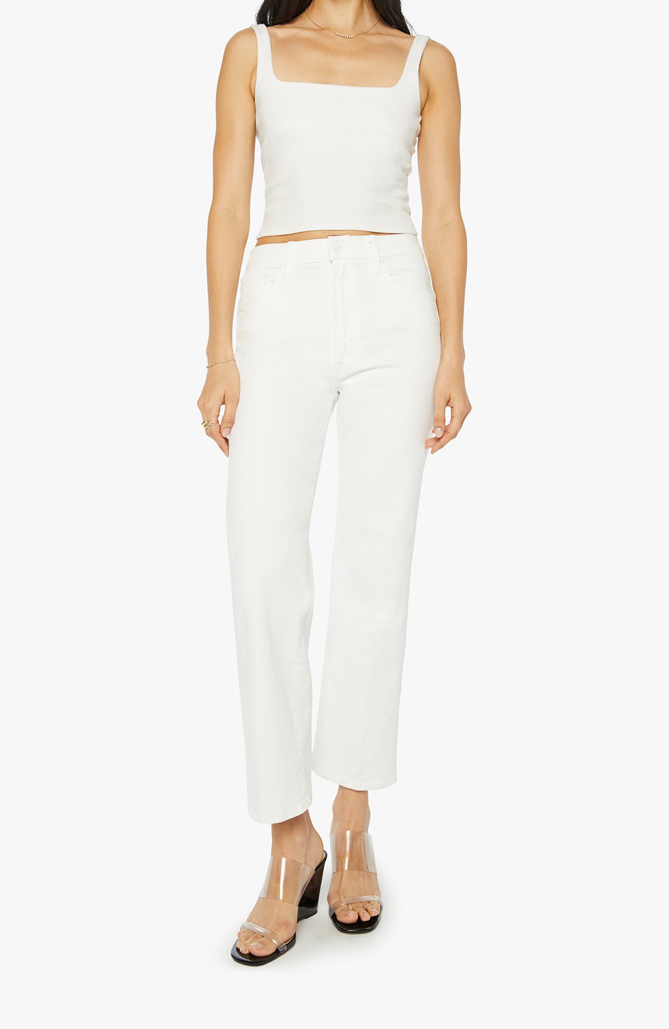 Mirror, mirror. High-waisted jeans with a wide straight leg, zip fly and clean ankle-length inseam. Made from stretch denim, Fairest Of Them All is our bestselling white wash.