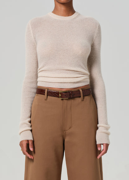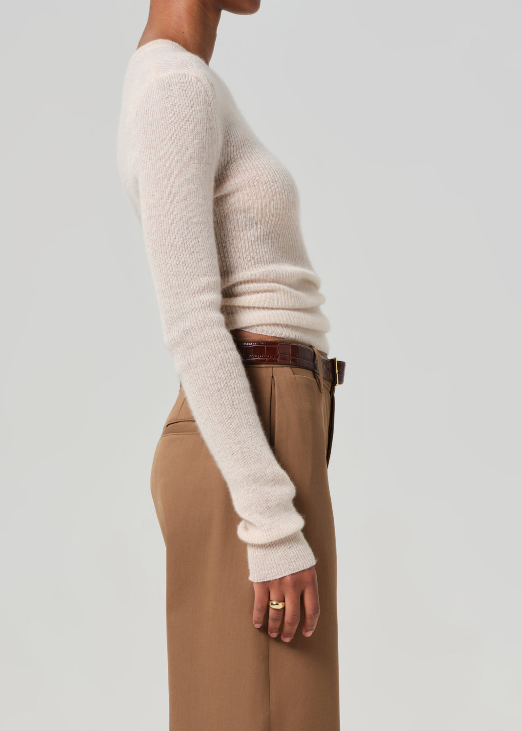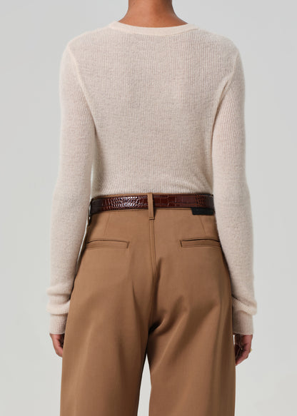 This sheer, slim long-sleeved crewneck sweater is crafted with a close fit. An essential layering piece.