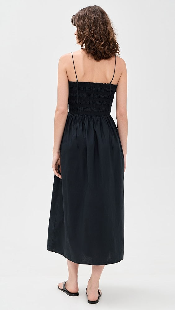 Made from lightweight cotton poplin, this midi dress features a fully smocked bodice that fits close to the body before flowing into a relaxed skirt. The square neckline and side pockets make it as practical as it is pretty.