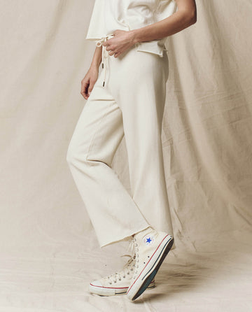 This sweatpant has the most perfect wide, cropped leg- featuring a raw cut hem for a naturally slouchy and easy fit. The drawstring waist replaces traditional elastic for a more customizable look. Made from a washed cotton terry with a vintage feel and the softest hand.Pair back to your favorite tees and sweatshirts. Handcrafted locally in Los Angeles, our process ensures beauty and uniqueness—no two pieces are alike.