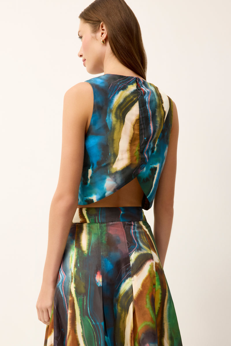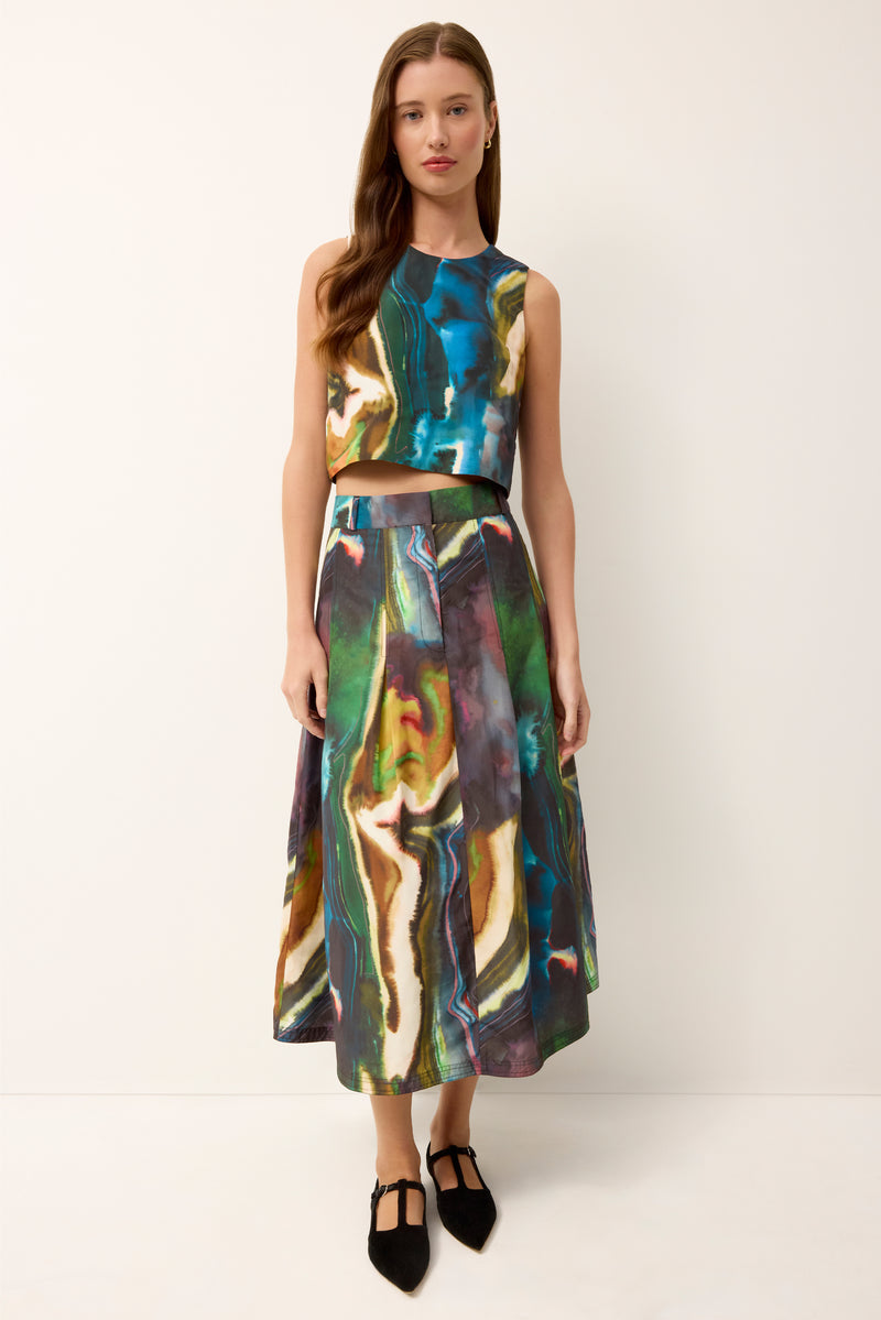 A slightly cropped A-line shape combined with the colorful, geological-inspired Delta print makes the Jamie top one of our design team’s favorite tops for fall. For an edgier editorial look, pair the singular silhouette with our matching Faith skirt.