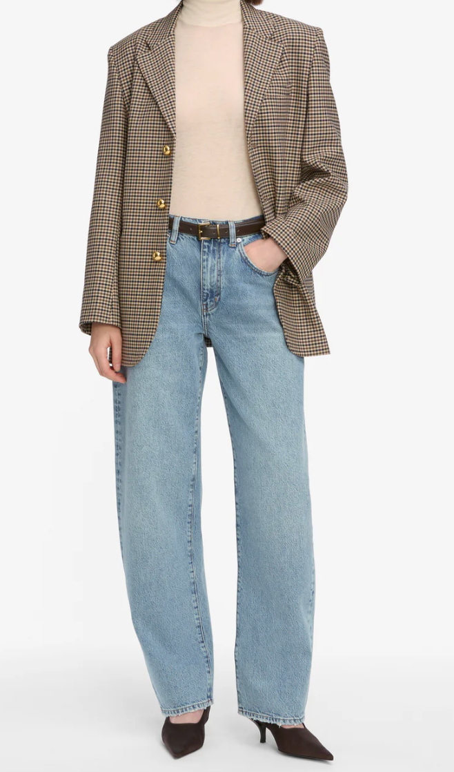 Our fresh take on a trending silhouette, this Low Slung Barrel is the new pair to add to your current rotation. It has a waist that sits right on the hips with a subtle taper at the leg and an inseam that rests on top of the foot. In other words, a flattering shape that looks good with all of your closet essentials.