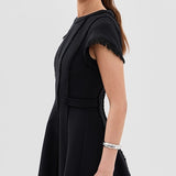 Features a mini-length A-line silhouette. Rayon-blend fabric has a softened feel and offers stretch.