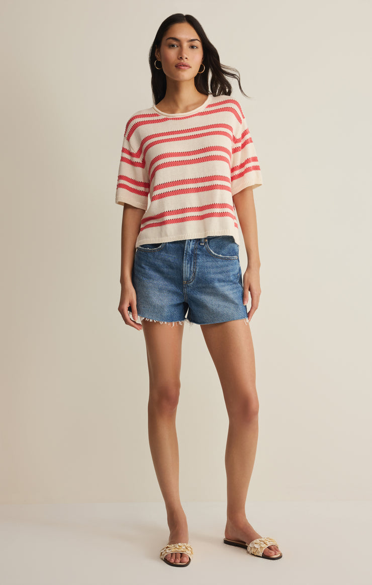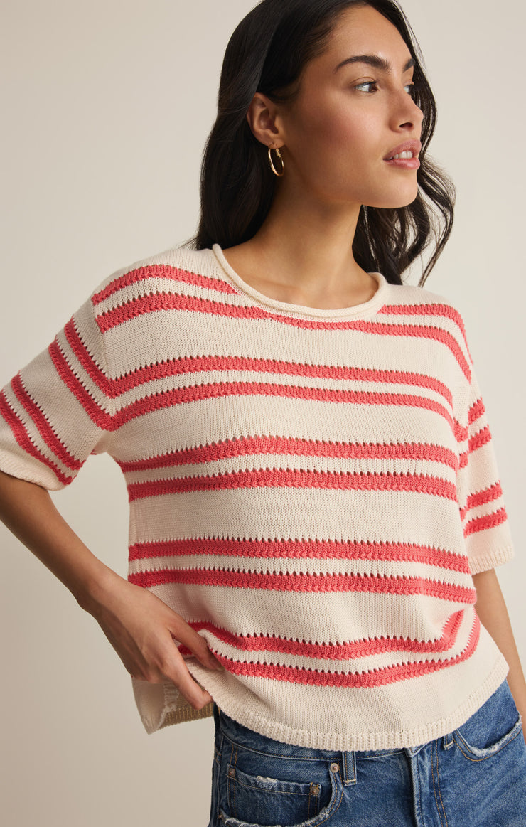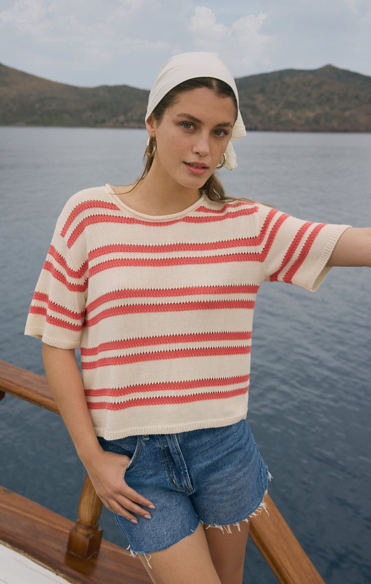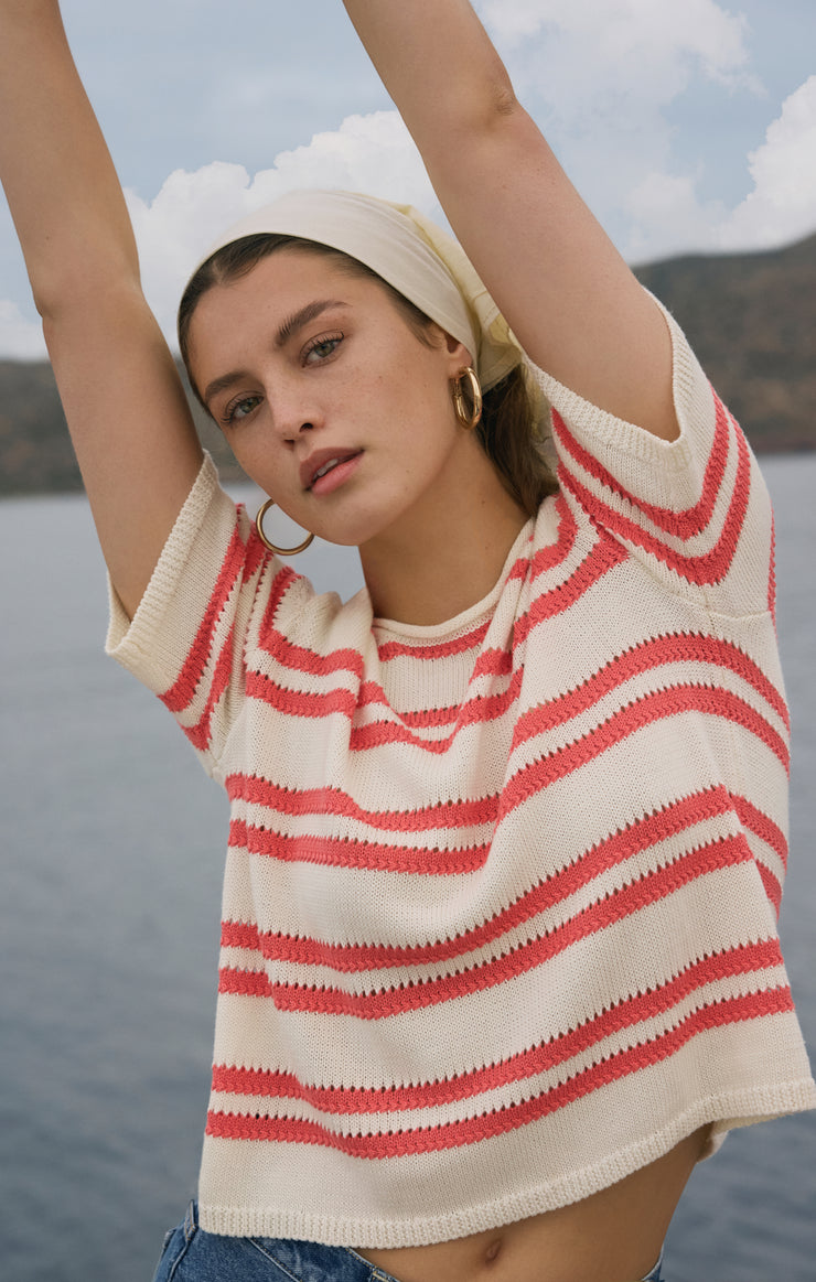 Crafted from a breathable textured knit, this sweater top offers a boxy silhouette and sunshine-ready stripes. Designed with a crew neckline and short sleeves, it's the kind of knit top you'll throw on without ever overthinking.
